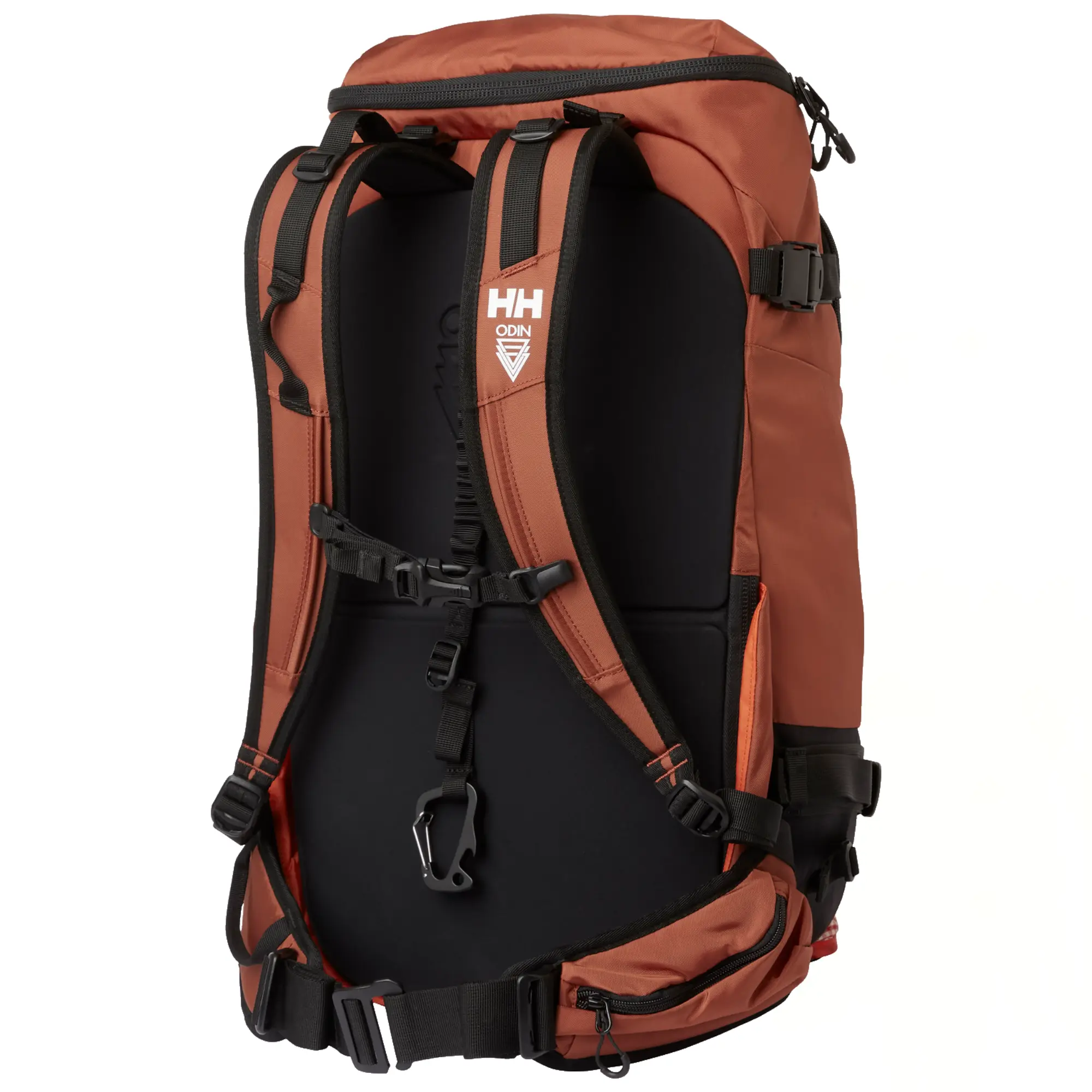 Avalanche safety pocket with organization for your probe, shovel handle and blade. A secondary mesh pocket with key clip is also included here