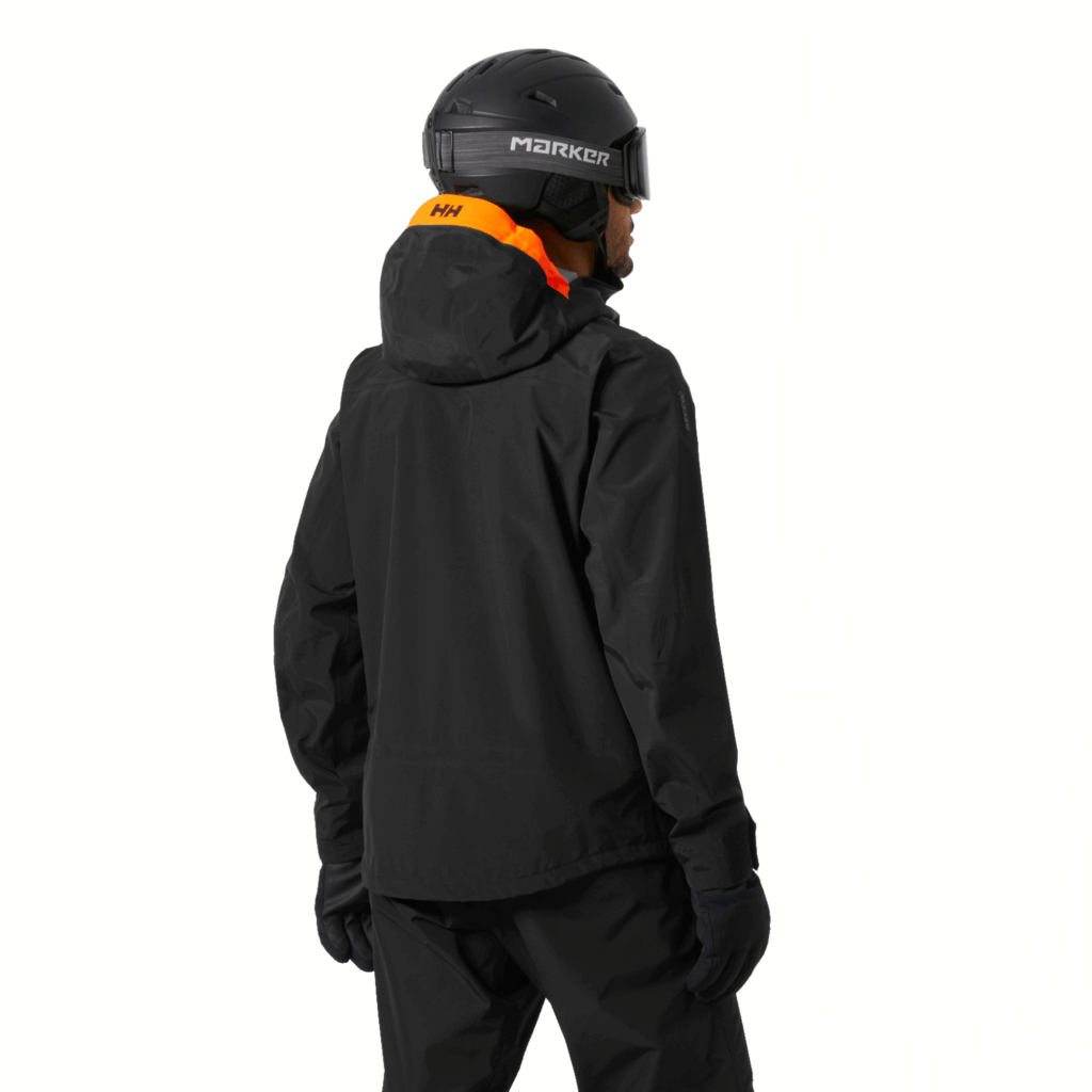 Built for demanding ascents and descents mountainside, the Sogn shell jacket performs on freeride adventures. This shell jacket has our strong 3-layer HELLY TECH® Professional waterproof/breathable construction plus a PFC-free, water-repellent treatment. You’ll stay dry while carving through deep powder. The Sogn Shell 2.0 Jacket is based on a former best-selling style of the same name. We upgraded it with key input from our professional ski ambassadors to help you go further. The articulated design enhances your freedom of movement, and details like elevated hand warmer pockets ensure backpack compatibility. Additional ski features include the RECCO® Advanced Rescue system, a ski pass pocket, a neon colored and helmet-compatible hood, a powder skirt and fusion modular jacket-to-pant system. We’re committed to reducing environmental impact. This jacket was responsibly made with the certified bluesign® textile manufacturing process, which reduces waste in every step of the clothing supply chain.
