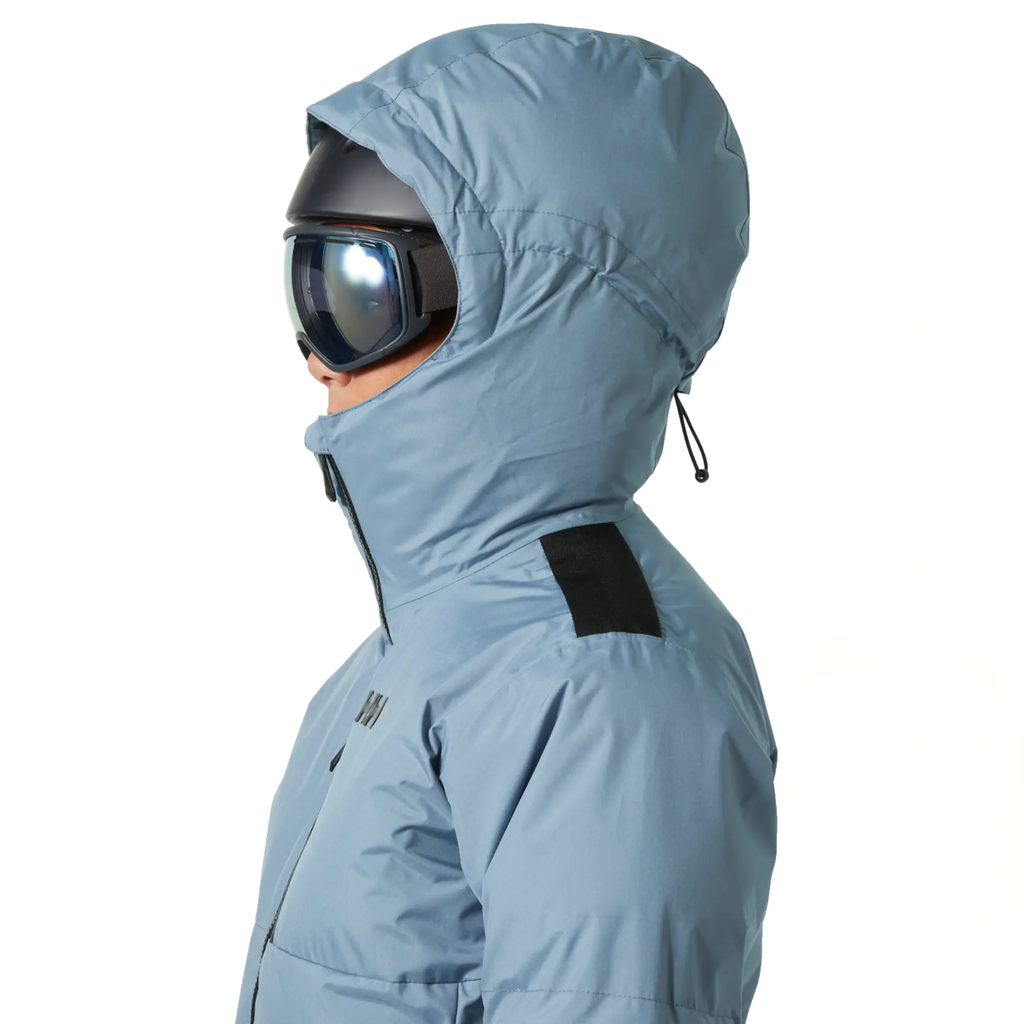 We designed our Women’s Kvitfjell Race Puffy Ski Jacket with the Team Telenor Alpine Norway ski teams to create a warm jacket that’s racing gear friendly. This puffy jacket provides exceptional heat retention thanks to synthetic insulated baffling. We’ve constructed the arms so you have plenty of room to wear your armguard and to slide the jacket on and off easily while keeping your gloves on. Other handy ski features include an adjustable powder skirt, a chest pocket with a goggle wipe, and a LIFE POCKET™ to help maintain cell phone battery life in cold weather. It also features a phone holder with a sling to stay secured to the pocket.